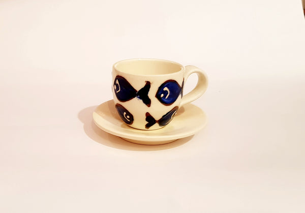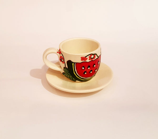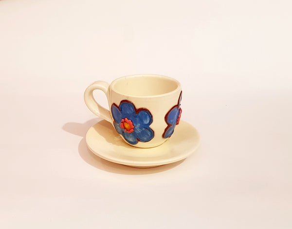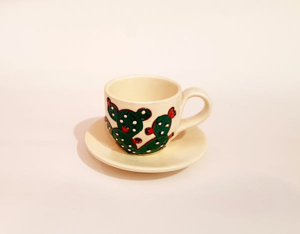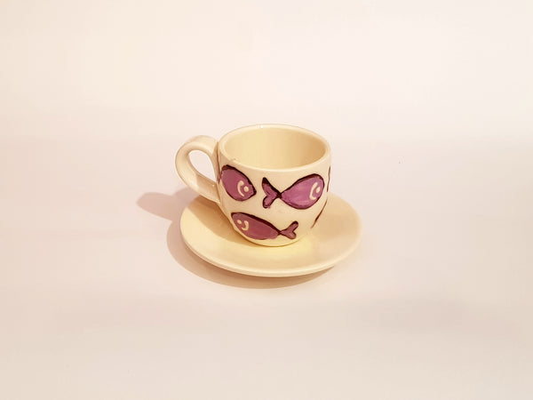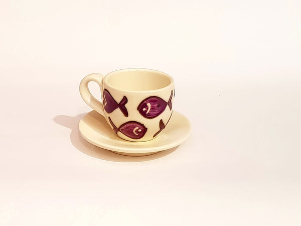 Tazzina da caffe in ceramica; colori atossici e senza piombo;con particolari rifiniture in rilievo; simpatica e originale;lavabile anche in lavastoviglie